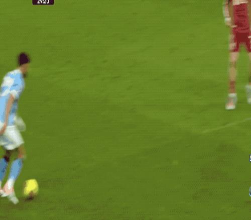 第29分钟,努内斯边路传中,科纳特头球冒顶,皮球被动砸在哈兰德的头上,顶出抛物线,顶进死角。