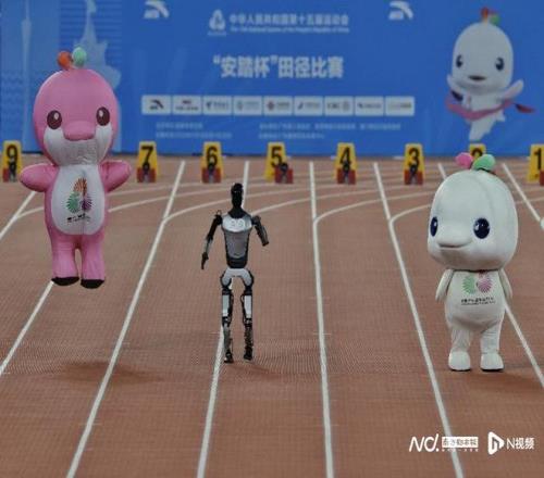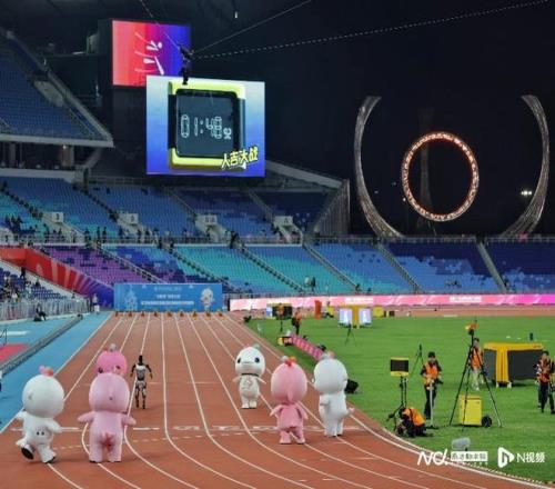 你猜谁赢了飞人大战前,十五运会吉祥物与机器人竞赛百米跑