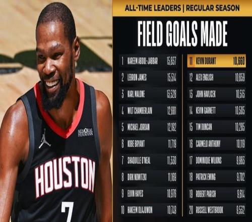 此外,杜兰特还创下了纪录。杜兰特命中本场第2球之后,其生涯命中数来到10660个,正式超越了阿历克斯·英格利什,升至NBA历史命中数榜的第11位。