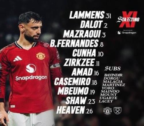 曼联vs西汉姆联:库尼亚、海文首发,齐尔克泽出战,利马替补