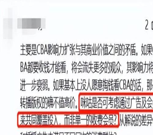 毕竟许多咪咕用户都是奔着咪咕能看CBA来的。