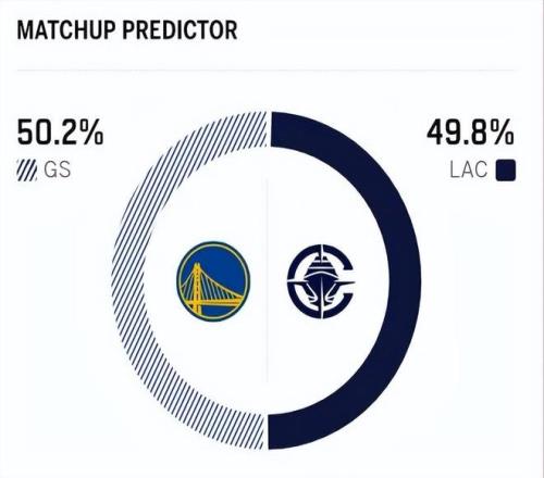 赛前,美媒ESPN对本场比赛进行了胜率预测,快船队胜率为49.8%,勇士胜率则为50.2% ,略占一点点优势。